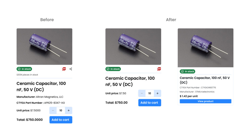 We designed key components, like the product card component, focusing on readability and responsiveness for different screen sizes.
